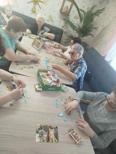 В МБУ ЦСО на базе отделения дневного пребывания прошло очередное занятие с психологом, где отдыхающие собрались за большим столом и вместе работали над сборкой пазлов. Пазлы — это не только увлекательное, но и полезное занятие для развития внимания, памяти и мелкой моторики. В процессе работы участники общались друг с другом, делились впечатлениями и помогали находить нужные детали, что способствовало улучшению эмоционального состояния и созданию позитивного настроя. Психолог сопровождал занятие, поддерживая беседу и помогая каждому почувствовать себя вовлечённым и значимым. Такие встречи помогают развивать когнитивные навыки, снижают уровень тревожности и укрепляют социальные связи между участниками. |